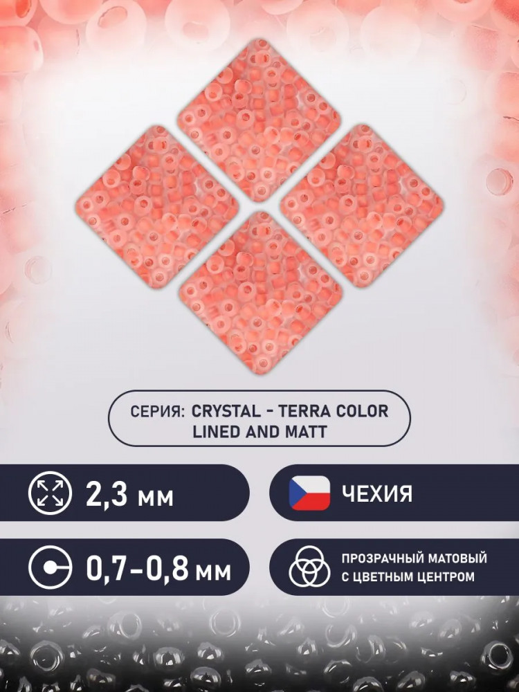 Preciosa Бисер прозрачный матовый с цветным центром, цвет 38389 лососевый