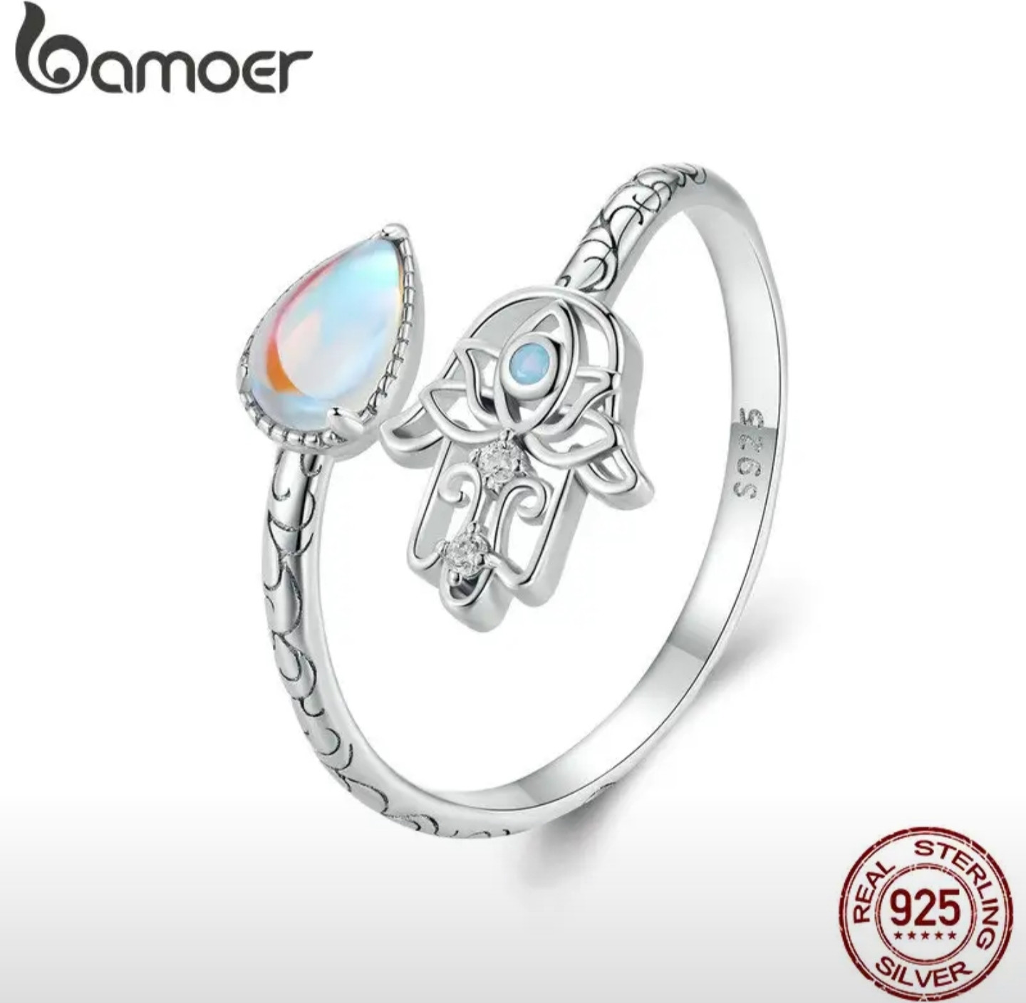 Bamoer Серебряное кольцо с лунным камнем