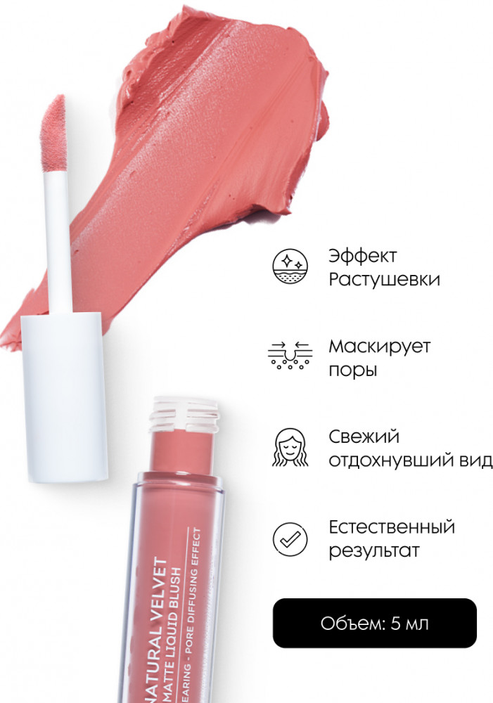 SEVEN7EEN Румяна для лица матовые «Natural Velvet Matte Liquid Blush», оттенок 04 Счастливый румянец