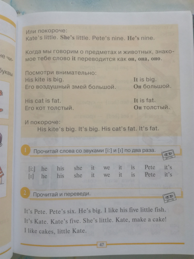 Учебник очень хороший, все понятно. Легко обучатся. Но, плохо что методички и аудио кассет нет. Пришлось искать в интернете, и то не нашла. Было бы лучше если продавали готовый комплект, книга, тетрадь и остальное сопутствующее.