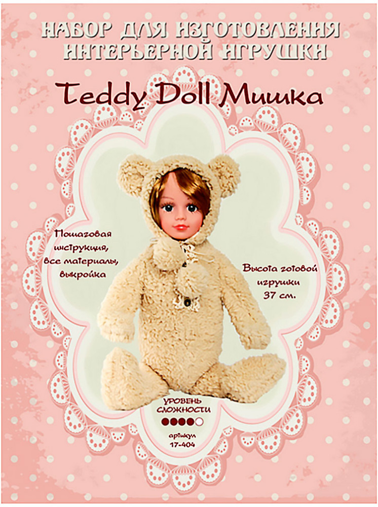 Sovushka Набор для изготовления интерьерной игрушки «Мишка Teddy Doll»В данный момент этот товар отсутствует в продаже. Возможно, у нас найдется аналогичный или похожий товар здесь. Teddy Doll — пушистые мягкие игрушки с кукольными лицами. Этот формат нравится многим современным мастерицам. Почему бы не попробовать сделать такую игрушку своими руками? В наборе собраны все материалы для шитья и подробная инструкция, вам останется только подобрать нитки, иглу и подходящие ножницы для рукоделия. Подарите готовую игрушку ребенку или украсьте ей интерьер. Высота готовой игрушки: 37 см. |