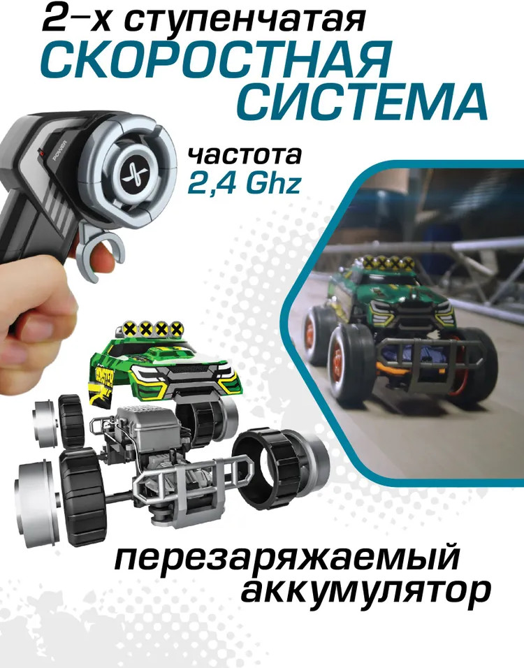 💳 Оплатить за товар можно при получении 🇰🇿 Есть бесплатная доставка по Казахстану от 1 дня 🎁 Копите бонусы с каждой покупки Машинка-конструктор на радиоуправлении, которую ребёнок может собрать сам. Мощный внедорожник имеет кузов грузовика-монстра, большие габариты автомобиля, большие колеса для бездорожья и дополнительный сменный кузов. Для сборки не требуются никакие винты и инструменты, все необходимые детали уже в комплекте. |