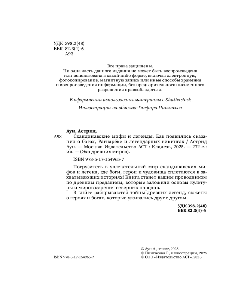 💳 Оплатить за товар можно при получении 🇰🇿 Есть бесплатная доставка по Казахстану от 1 дня 🎁 Копите бонусы с каждой покупки Серия: Эхо древних миров Погрузитесь в увлекательный мир скандинавских мифов и легенд, где боги, герои и чудовища сплетаются в захватывающих историях! Книга станет вашим проводником по древним преданиям, которые заложили основы культуры и мировоззрения северных народов. |