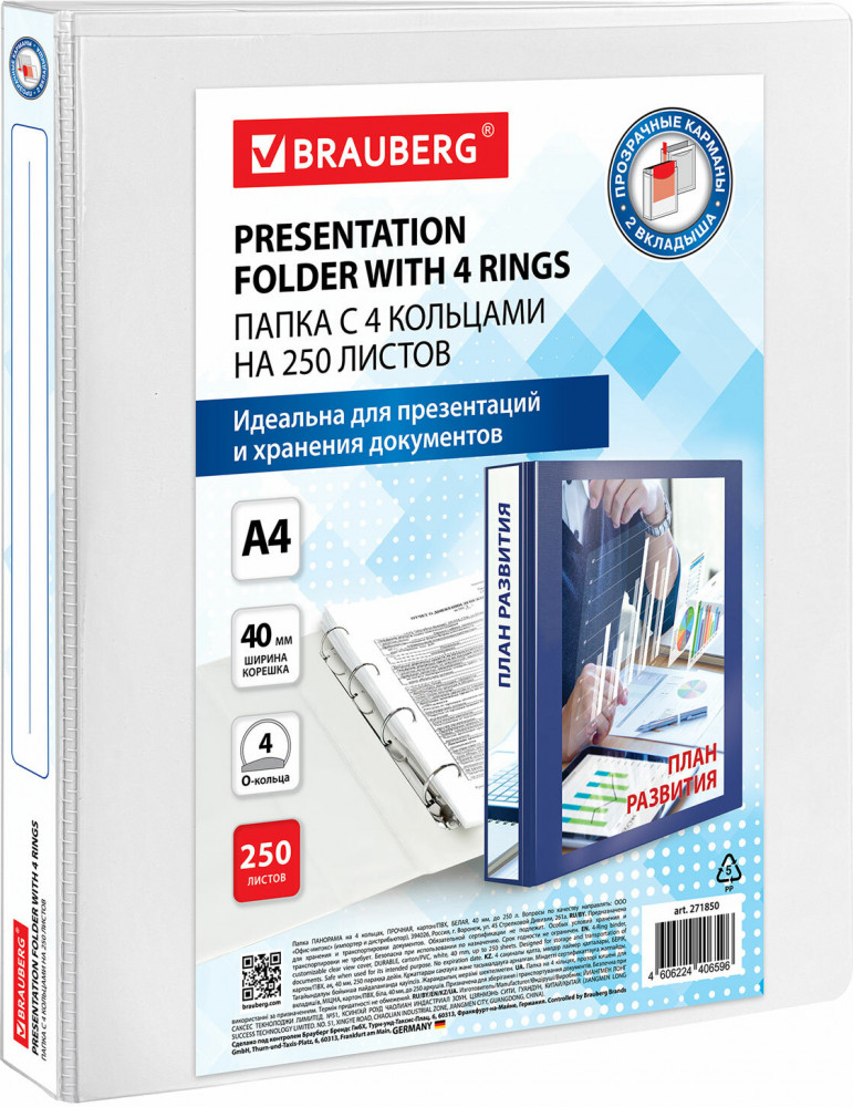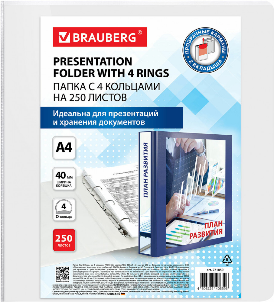 Brauberg Папка на 4 кольцах прочная «Панорама»