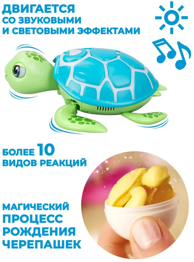 💳 Оплатить за товар можно при получении 🇰🇿 Есть бесплатная доставка по Казахстану от 1 дня 🎁 Копите бонусы с каждой покупки Самая милая зелёная черепашка, которая так нуждается в заботе и внимании. Интерактивная черепашка реагирует на прикосновения, поэтому детям будет интересно наблюдать за её поведением и взаимодействовать с ней. У питомца подвижные лапки, и голова, которые активируются, если погладить черепашку. А ещё питомец умеет очень реалистично моргать и выражать свои эмоции с помощью подсветки панциря. Если он загорается зелёным цветом, значит, питомец голоден. Значит, необходимо его покормить, после чего панцирь загорится красным цветом, выражая благодарность и счастье. Черепашка также может выражать грусть (голубой подсветкой) и усталость (жёлтой подсветкой). Что самое удивительное — черепашка располагается на специальной подставке и откладывает яички, внутри которых маленькие черепашки! Эта игрушка даёт детям возможность научиться ухаживать за домашними животными, быть ответственными и внимательными. Игрушка — питомец в виде черепашки непременно станет отличным другом для ребёнка. |