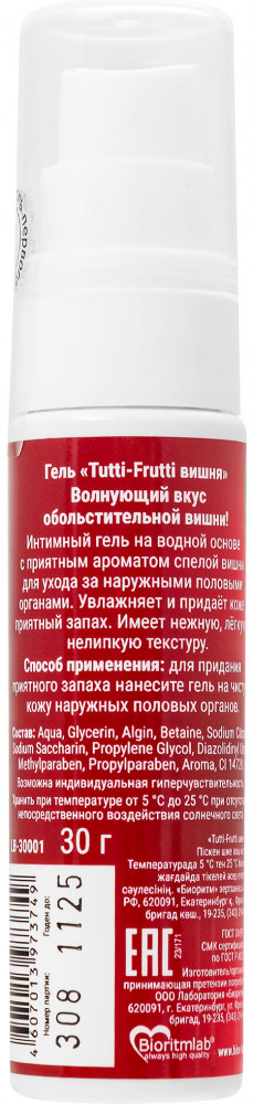Биоритм Гель-смазка с вишнёвым вкусом «Tutti-Frutti»