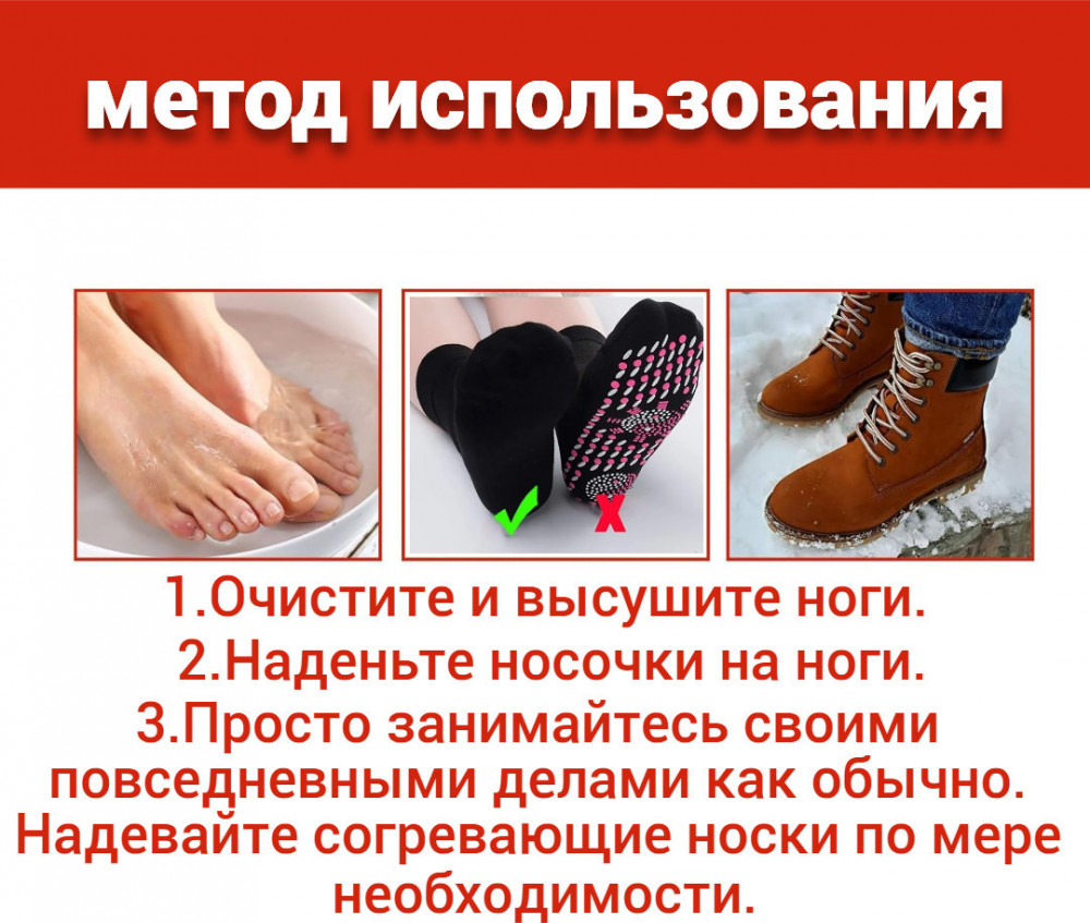 Способ применения: использование в любое время дня, каждый день, можно даже ночью во время сна. Для того, чтобы ощутить полезный эффект максимально быстро, следует регулярно надевать носочки на ночь, по началу на 15-20 минут, потом уже увеличивая время до 8-10 часов. Учитывая индивидуальное состояние организма, регулируйте продолжительность ношения турмалиновых носков. Такие носки могут использовать при переездах и длительных перелетах, они обеспечат отсутствие усталости и отечности. При этом ориентируйтесь на индивидуальную переносимость.
