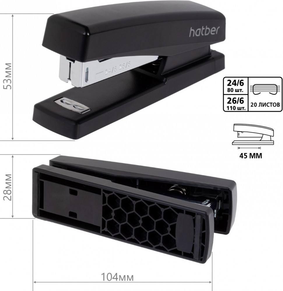 Hatber Степлер №24/6, 26/6В данный момент этот товар отсутствует в продаже. Возможно, у нас найдется аналогичный или похожий товар здесь. Серия: Matrix Степлер Hatber Technic — надежный и прочный офисный помощник, созданный для ежедневной нагрузки. Подходит для скоб №24/6 и №26/6, легко справляется со сшиванием до 20 листов одновременно. |