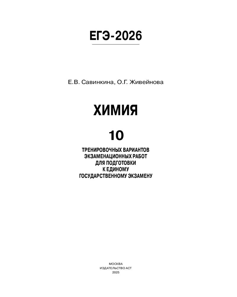 ЕГЭ-2026. Химия. 10 тренировочных вариантов экзаменационных работ для подготовки к единому государственному экзаменуЕлена Владимировна Савинкина, Ольга Геннадьевна Живейнова +56
