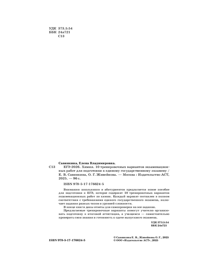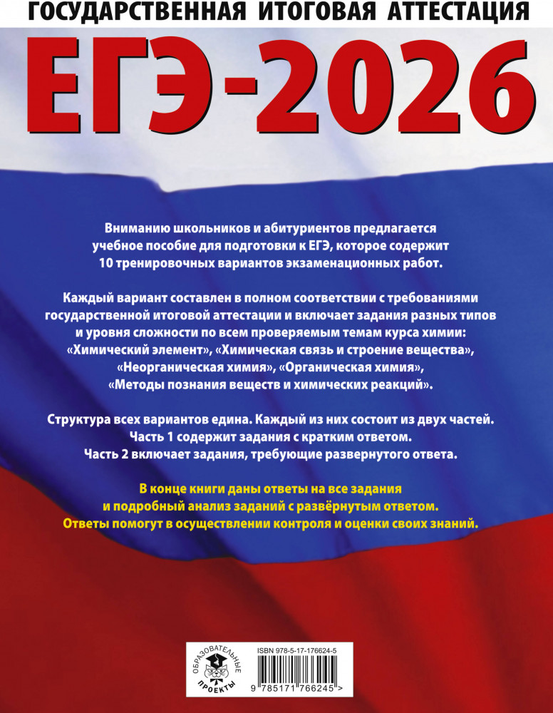 💳 Оплатить за товар можно при получении 🇰🇿 Есть бесплатная доставка по Казахстану от 1 дня 🎁 Копите бонусы с каждой покупки Серия: ЕГЭ-2026. Это будет на экзамене Вниманию школьников и абитуриентов предлагается новое пособие для подготовки ЕГЭ, которое содержит 10 тренировочных вариантов экзаменационных работ по химии. Каждый вариант составлен в полном соответствии с требованиями единого государственного экзамена, включает задания разных типов и уровня сложности. В конце книги даны ответы для самопроверки на все задания. Предлагаемые тренировочные варианты помогут учителю организовать подготовку к итоговой аттестации, а учащимся — самостоятельно проверить свои знания и готовность к сдаче выпускного экзамена. |