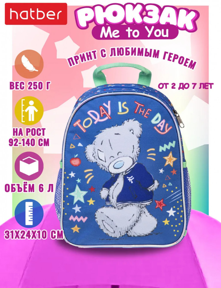 Рюкзачок для девочки — это не просто детская сумочка, а настоящий помощник в ежедневных делах вашей малышки. Эргономичная вентилируемая спинка и мягкие регулируемые лямки обеспечивают комфорт даже при длительном ношении. Светоотражающие элементы добавляют безопасности при прогулках в темное время суток. Этот рюкзак для девочек — настоящий помощник в повседневной жизни и весьма универсален: идеально подходит для прогулок, путешествий, поездок в машину, самолет или на дачу. Он не только функциональный, но и стильный с изображением любимого героя девчонок Мишкой Тедди Me to You— станет любимым аксессуаром вашей маленькой принцессы. Подарите своей малышке легкий и удобный рюкзачок для маленькой модницы!