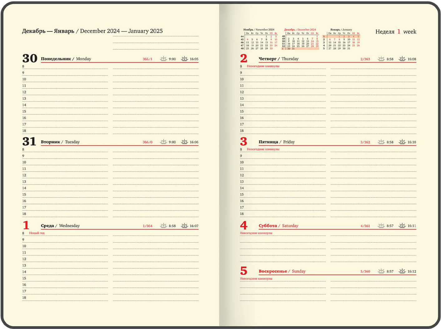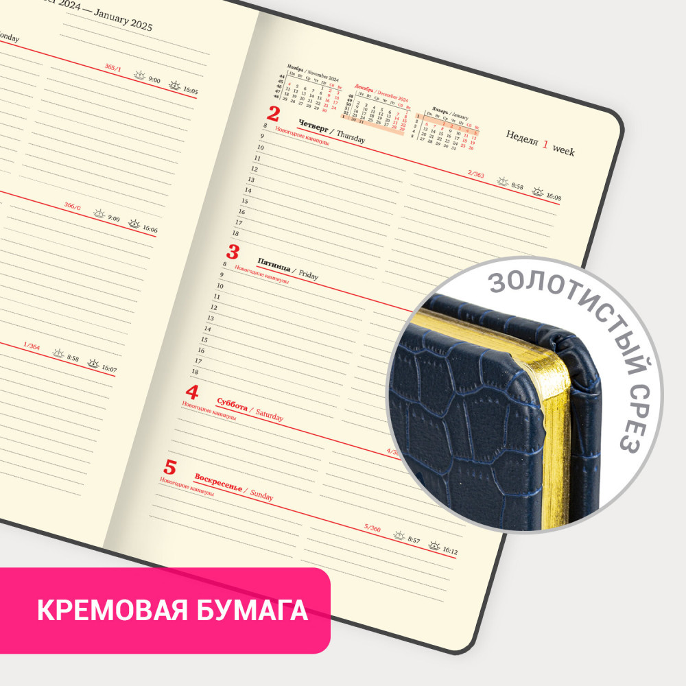 Стильный удобный размер датированный, всё продумано для комфортного планирования дел
