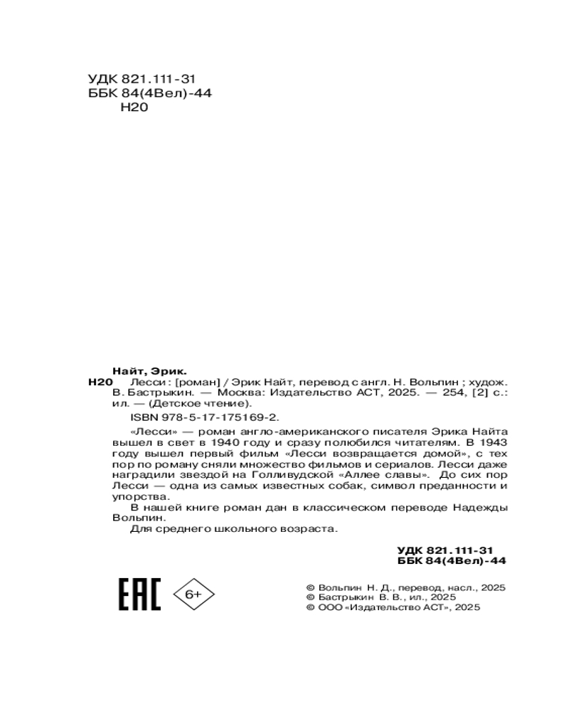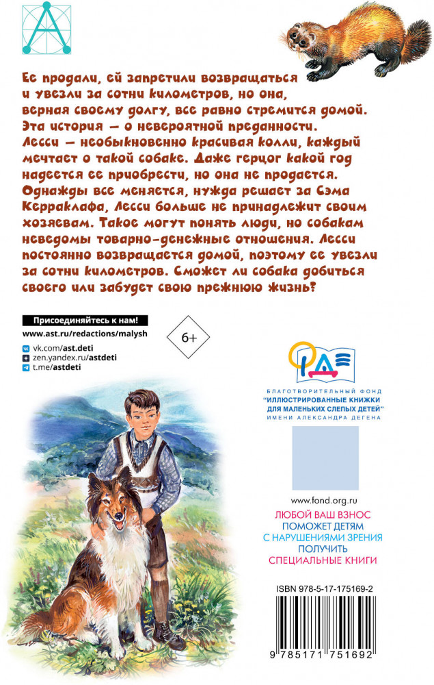 💳 Оплатить за товар можно при получении 🇰🇿 Есть бесплатная доставка по Казахстану от 1 дня 🎁 Копите бонусы с каждой покупки Серия: Детское чтение «Лесси» — роман англо-американского писателя Эрика Найта вышел в свет в 1940 году и сразу полюбился читателям. В 1943 году вышел первый фильм «Лесси возвращается домой», с тех пор по роману сняли множество фильмов и сериалов. Лесси даже наградили звездой на Голливудской «Аллее славы». До сих пор Лесси — одна из самых известных собак, символ преданности и упорства. |