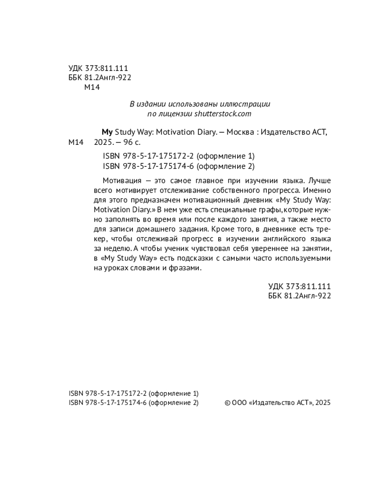 💳 Оплатить за товар можно при получении 🇰🇿 Есть бесплатная доставка по Казахстану от 1 дня 🎁 Копите бонусы с каждой покупки Серия: Study Tracker Мотивация — это самое главное при изучении языка. Лучше всего мотивирует отслеживание собственного прогресса. Именно для этого предназначен мотивационный дневник «My Study Way: Motivation Diary.» В нем уже есть специальные графы, которые нужно заполнять во время или после каждого занятия, а также место для записи домашнего задания. Кроме того, в дневнике есть трекер, чтобы отслеживай прогресс в изучении английского языка за неделю. А чтобы ученик чувствовал себя увереннее на занятии, в «My Study Way» есть подсказки с самыми часто используемыми на уроках словами и фразами. |