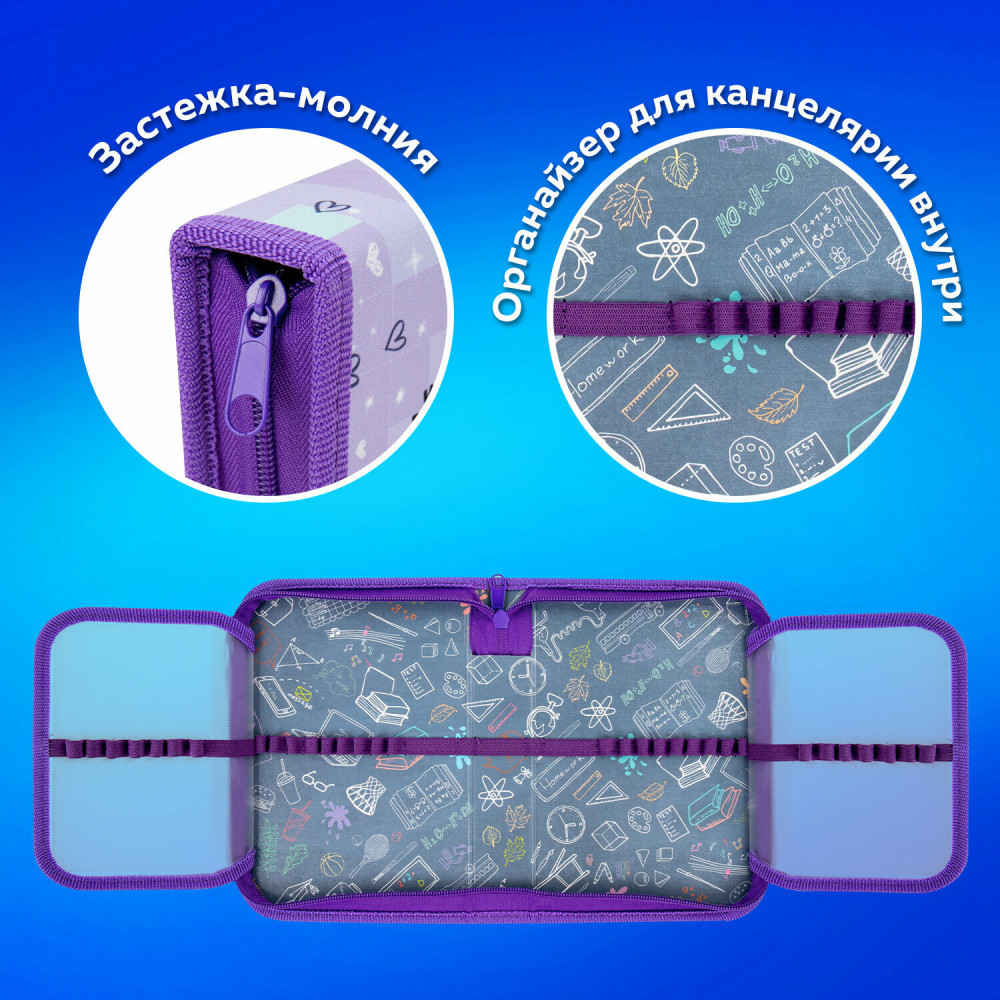 💳 Оплатить за товар можно при получении 🇰🇿 Есть бесплатная доставка по Казахстану от 1 дня 🎁 Копите бонусы с каждой покупки Серия: Double FLap Пенал Пифагор с 1 отделением, с 2 откидными планками. Удобная молния с трех сторон с металлическим бегунком, прочные резинки для предметов. Вмещает до 42 предметов. Материал пенала — полиэстер с цветной печатью и ярким дизайном. Основа пенала — плотный картон, обшитый тканью по краям. Такая конструкция отличается износостойкостью и прочностью, поможет защитить канцелярские принадлежности от повреждений. Внутри пенала на каждой створке прочные резинки для канцелярских принадлежностей, также пенал оснащен 2 откидными планками с органайзером и прозрачным кармашком для расписания уроков или таблицы умножения. Шаблон расписания уроков идет в подарок! Внутренняя часть выполнена из картона с глянцевой ламинацией. |