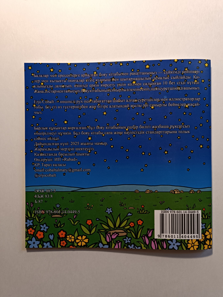 💳 Оплатить за товар можно при получении 🇰🇿 Есть бесплатная доставка по Казахстану от 1 дня 🎁 Копите бонусы с каждой покупки Балалар мен ересектерге арналған сүйкімді кейіпкерлері мен тартымды оқиғалары бар бояу кітабынан ләззат алыңыз — қуаныш, шабыт және шығармашылық демалыс үшін. Қиялыңыз бен медитативті бояуға арналған, көшпенді стильде қолдан салынған 10 бет сізді күтеді. Жаңа достармен танысыңыз, бояулардың сиқырлы әлеміне еніңіз және өзіңізден суретші талантын ашыңыз. |