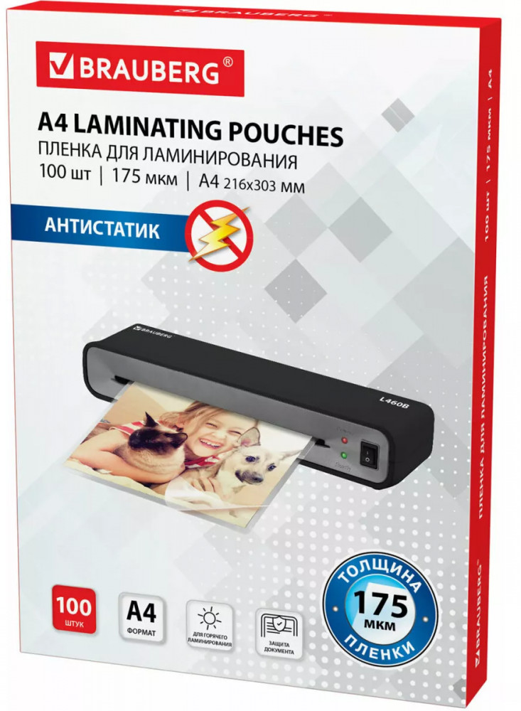 💳 Оплатить за товар можно при получении 🇰🇿 Есть бесплатная доставка по Казахстану от 1 дня 🎁 Копите бонусы с каждой покупки Пленка для ламинирования Brauberg надежно защитит документы от влаги, пыли, воздействия УФ-лучей и других внешних факторов. Представляет собой двойной пакет, спаянный с одной стороны (содержание полиэстера > 50%). Документ вкладывается между слоями пленки и в дальнейшем подвергается термообработке в ламинаторе. Суммарная толщина пленки-заготовки — 350 (175×2) мкм, что позволяет защитить документы и увеличить жесткость, сохраняя яркость изображения. Обработаны специальным составом для того, чтобы бумага, при вкладывании в пакет для ламинирования, не прилипала к пленке из-за действия статического электричества. |