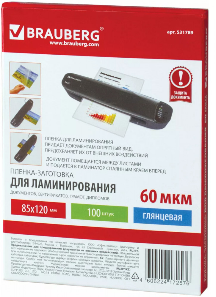 Brauberg Пленки-заготовки для ламинирования глянцевые-20% +25