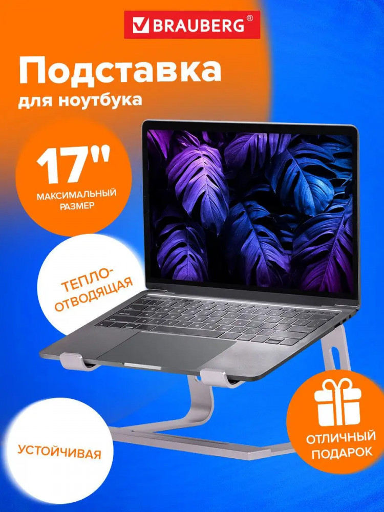 Подставка для ноутбука Brauberg «Solid» обеспечивает максимальное удобство работы с гаджетом за столом. Приобретайте наши товары для офиса и убедитесь в этом сами!