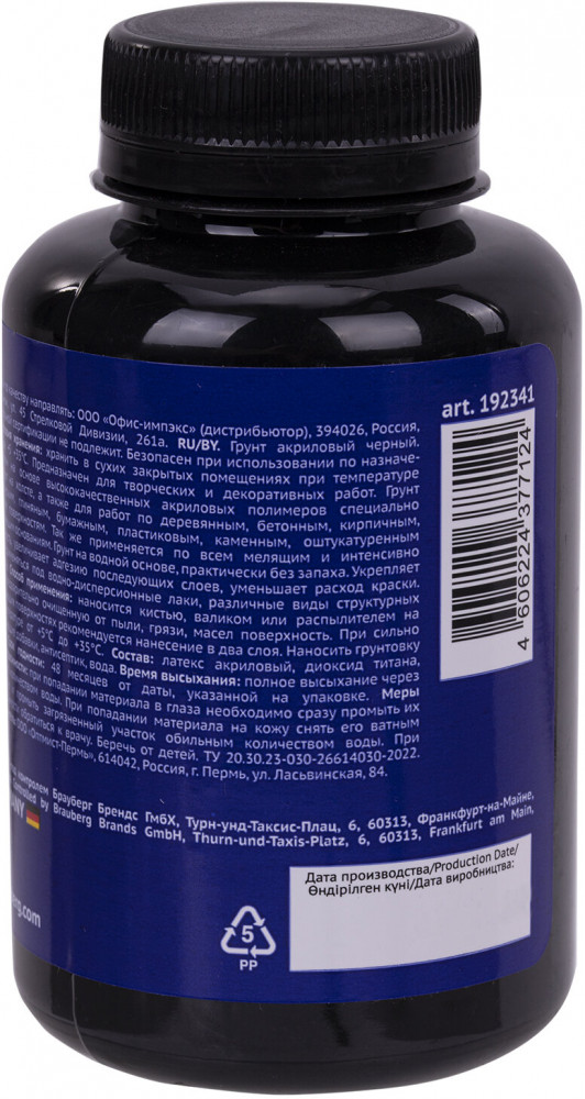 Применяется под водно-дисперсионные лаки, масляные и акриловые краски, под различные виды структурных покрытий. Придаёт грунтуемой поверхности однородную плотность. Препятствует проникновению связующего вещества из красок в основу. Объем — 250 мл. Упаковка — пластиковая бутылка с плотно закручивающейся крышкой. Грунт акриловый художественный чёрный отлично подойдет как для художественных, так и для декоративных работ. Покупайте чёрный грунт Brauberg ART CLASSIC и воплощайте любые творческие идеи!