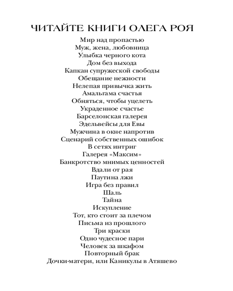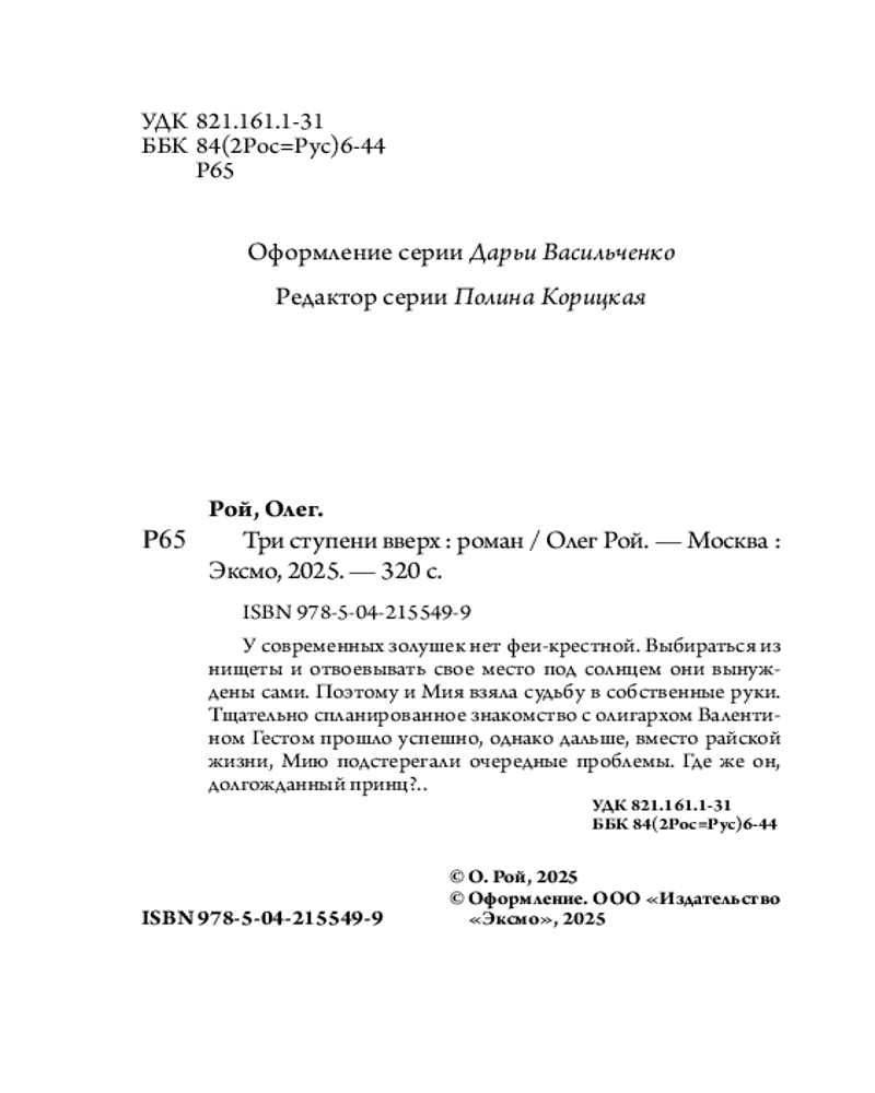 💳 Оплатить за товар можно при получении 🇰🇿 Есть бесплатная доставка по Казахстану от 1 дня 🎁 Копите бонусы с каждой покупки Серия: Олег Рой - мастер психологического романа. Новое оформление (обложка) Вторая часть трилогии «Три цвета любви» популярного мастера любовно-психологических романов — Олега Роя. История, которая заставляет задуматься о настоящих ценностях в жизни. Через что можно переступить, чтобы подняться вверх по лестнице? И принесет ли роман с богатым покровителем счастье? |