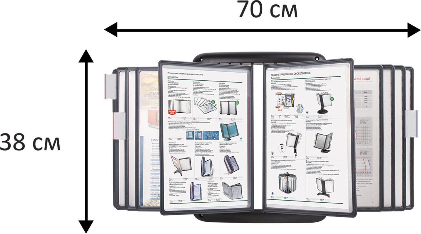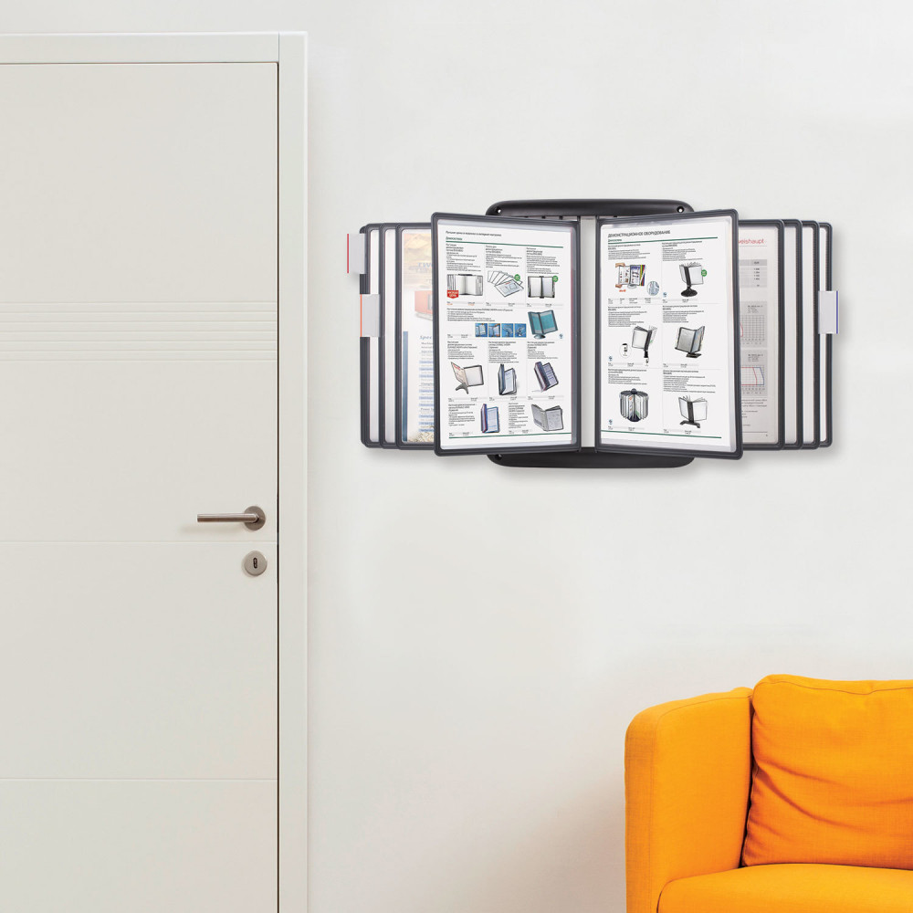 💳 Оплатить за товар можно при получении 🇰🇿 Есть бесплатная доставка по Казахстану от 1 дня 🎁 Копите бонусы с каждой покупки Настенная демонстрационная система Brauberg позволяет удобно и быстро разместить информацию о компании, о предлагаемых товара, услугах и ценах, инструкции для персонала и др. 10 двухсторонних панелей позволяют разместить одновременно до 20 листов формата А4. Прочные и гибкие литые рамки панелей изготовлены из полипропилена, пригодного для повторной переработки и дальнейшего использования. |