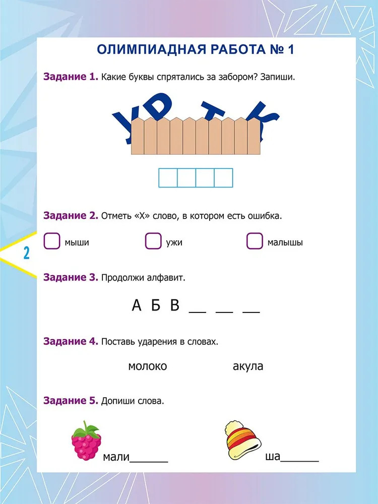 💳 Оплатить за товар можно при получении 🇰🇿 Есть бесплатная доставка по Казахстану от 1 дня 🎁 Копите бонусы с каждой покупки Серия: Готовимся к олимпиадам Пособие содержит практические задания по русскому языку для качественной подготовки обучающихся 1 класса к участию в олимпиадах разных уровней: школьных, районных, городских. Все задания составлены с учётом обновлённого ФГОС НОО и направлены на формирование у первоклассников универсальных учебных действий, основ логического мышления, смекалки и внимательности. |