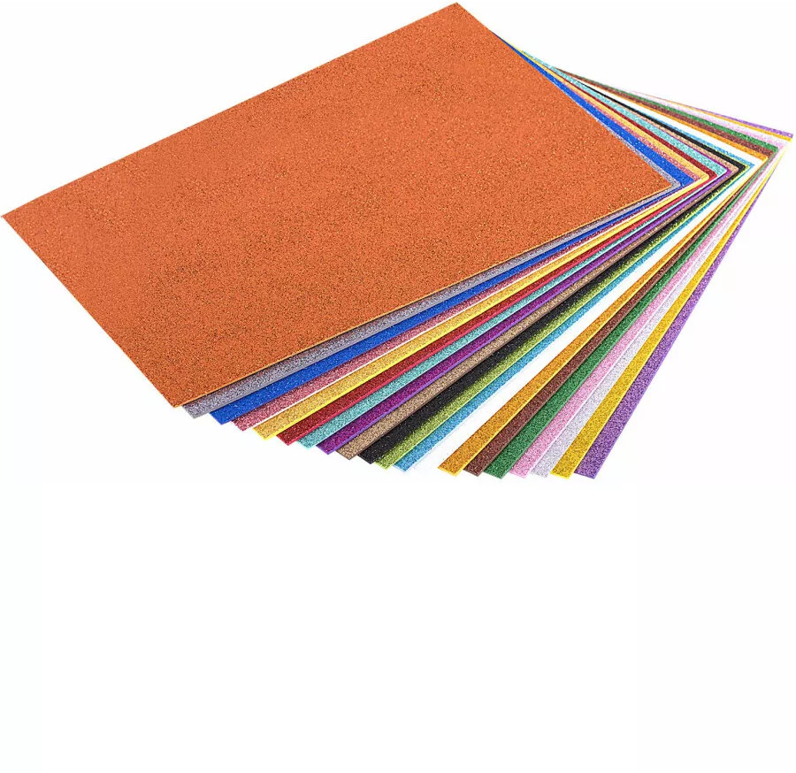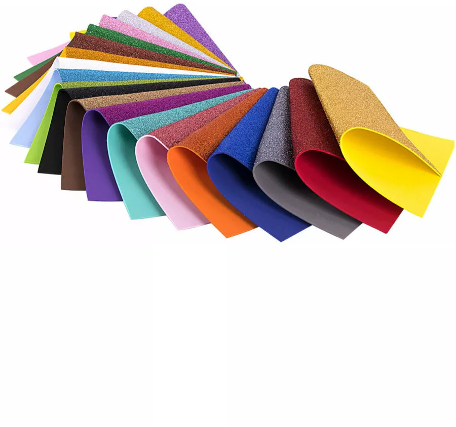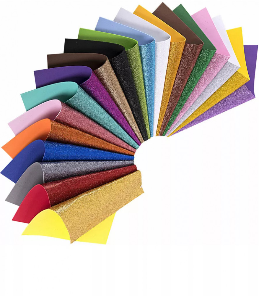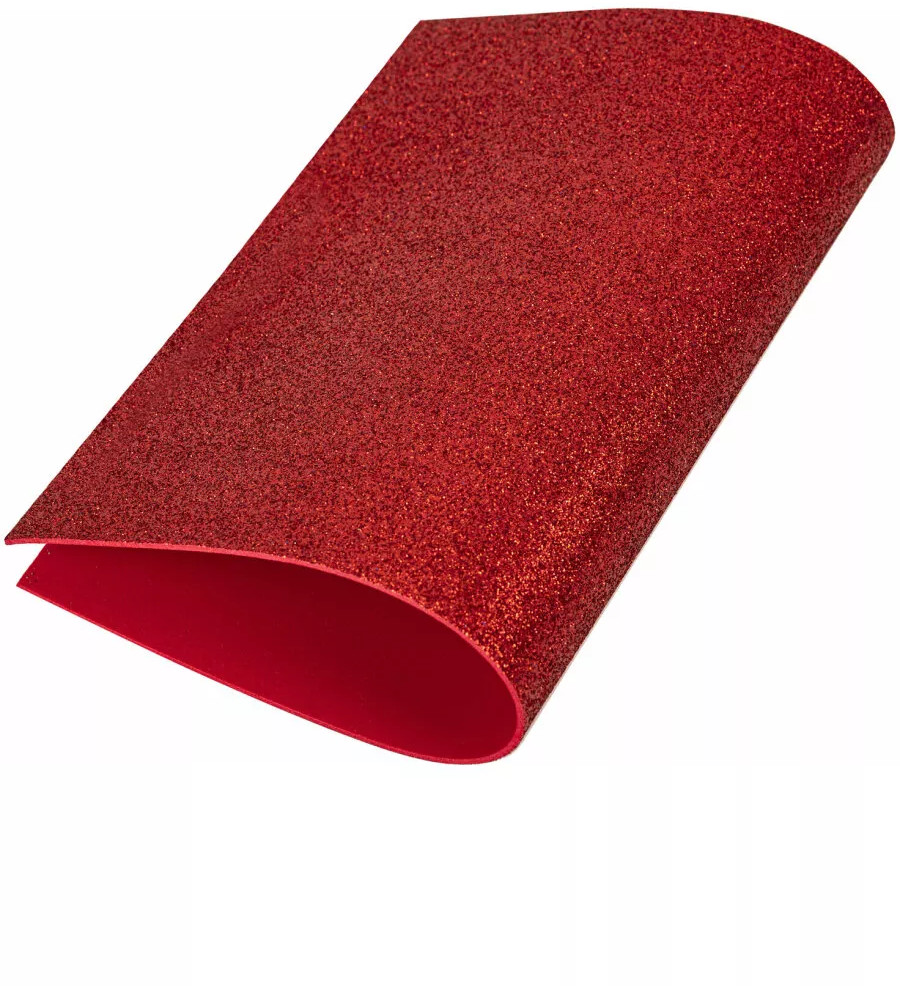 Глиттерный фоамиран — это фоамиран, декорированный блестками. Материал легко режется обычными ножницами, ему можно придать любую форму, растягивая и скручивая — блёстки не осыпаются. Используется для создания флористического декора, аппликаций, сувениров, детского рукоделия и создания украшений. Готовые изделия представляют собой аксессуары для волос (банты, ободки, резинки, короны), бижутерию, банты для подарочных упаковок, елочные игрушки. Фоамиран не токсичен, безопасен для детей.