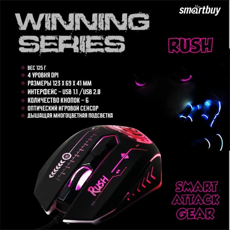 Smartbuy Мышь проводная Rush Mission SBM-727G-K+30