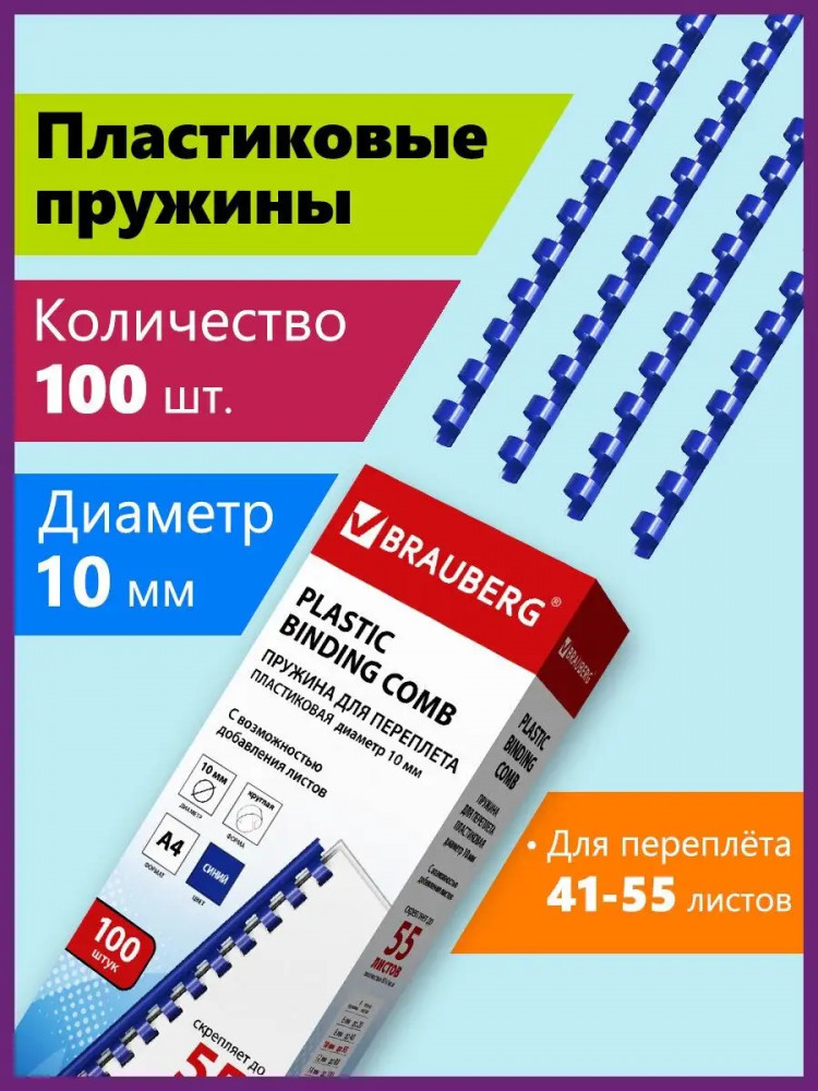 💳 Оплатить за товар можно при получении 🇰🇿 Есть бесплатная доставка по Казахстану от 1 дня 🎁 Копите бонусы с каждой покупки Пластиковая пружина для переплета документов Brauberg совместима с большинством переплетных машин. Преимуществом является возможность быстро извлечь документы из переплета или добавить листы в уже переплетенный документ. Рекомендуется использовать для переплета документов объемом от 41 до 55 листов. Изготовлена из высококачественного пластика синего цвета. Состоит из 21 кольца диаметром 10 мм. В упаковке 100 штук. |