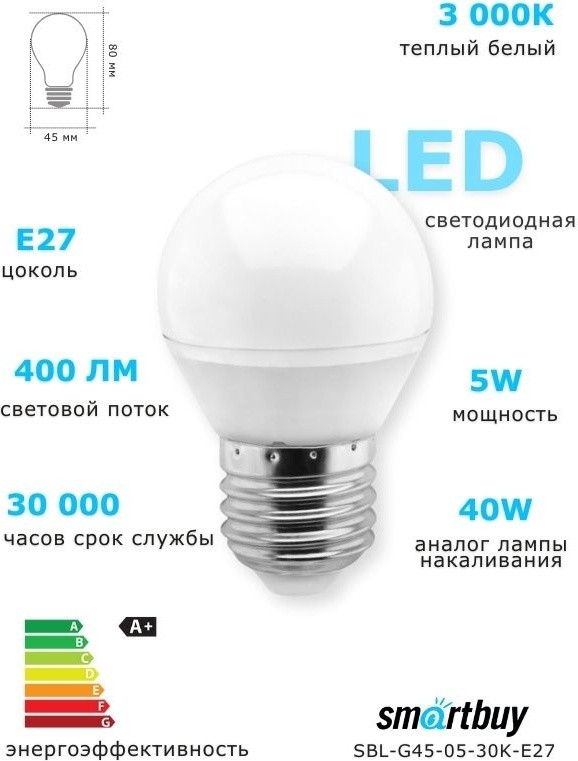 Smartbuy Светодиодная лампа LED G45 E27