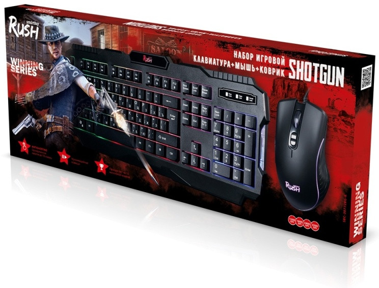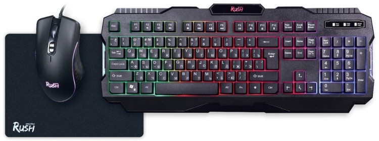 Smartbuy Клавиатура с мышью и ковриком SBC-307728G-KВ данный момент этот товар отсутствует в продаже. Возможно, у нас найдется аналогичный или похожий товар здесь. Клавиатура с мышью и ковриком Smartbuy SBC-307728G-K предназначен для геймеров и разработан с учетом всех их потребностей. Дизайн и разноцветная подсветка помогают создать соответствующее настроение. Мультимедийные кнопки на клавиатуре помогают быстро управлять воспроизведением переходить от одного ролика или трека к другому попадать в почту или на главную страницу. Кейкапы имеют вогнутую поверхность удобную для правильной постановки пальцев. Специальные метки на клавишах F и J служат для того чтобы даже в темноте получилось найти нужную позицию рук. Мышь Smartbuy SBC-307728G-K оптическая с четырьмя вариантами установки разрешения датчика в диапазоне от 800 до 2400 dpi. У нее есть две дополнительные кнопки которые можно запрограммировать под самые востребованные функции. Мышь одинаково подходит для работы левой и правой рукой. Коврик с нескользящим основанием всегда останется на месте. Его текстильная поверхность создает оптимальный уровень сцепления и позволяет точно считывать команды. |