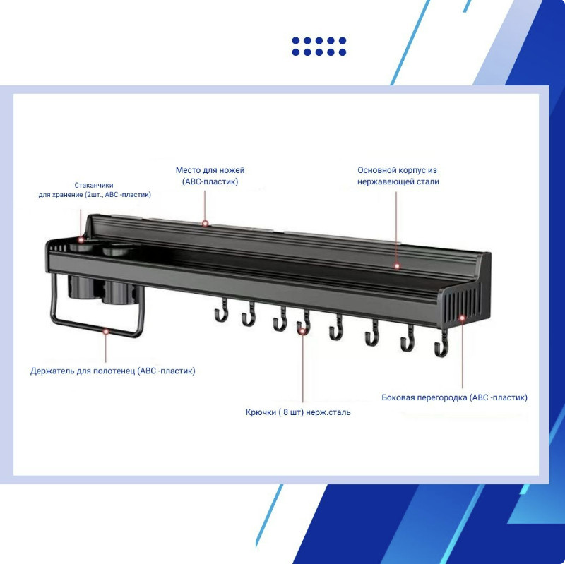 💳 Оплатить за товар можно при получении 🇰🇿 Есть бесплатная доставка по Казахстану от 1 дня 🎁 Копите бонусы с каждой покупки Настенная полка для кухни — идеальное решение для организации пространства и экономии места. Она изготовлена из прочного металла и выдерживает большой вес, позволяя удобно размещать различные кухонные принадлежности и бутылочки с приправами. Полка станет отличным помощником на вашей кухне, упрощая процесс приготовления пищи и обеспечивая порядок и аккуратность. |