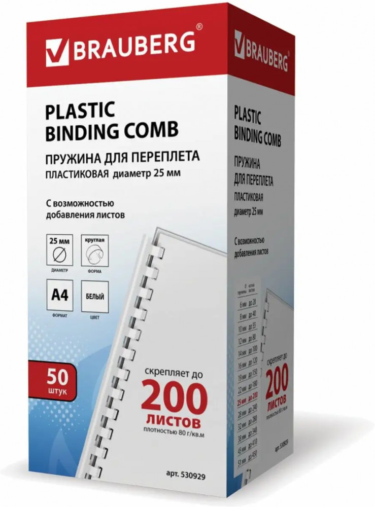 💳 Оплатить за товар можно при получении 🇰🇿 Есть бесплатная доставка по Казахстану от 1 дня 🎁 Копите бонусы с каждой покупки Пластиковая пружина для переплета документов Brauberg совместима с большинством переплетных машин. Преимуществом является возможность быстро извлечь документы из переплета или добавить листы в уже переплетенный документ. Рекомендуется использовать для переплета документов объемом от 181 до 200 листов. Изготовлена из высококачественного пластика белого цвета. Состоит из 21 кольца диаметром 25 мм. В упаковке 50 штук. |