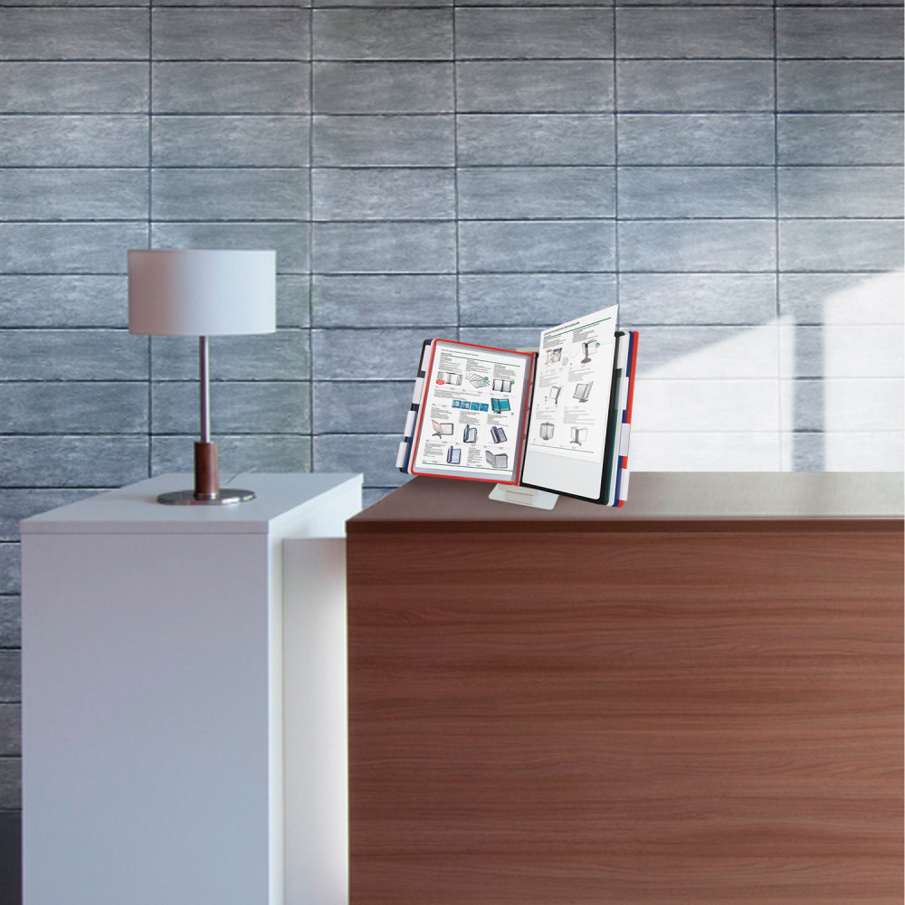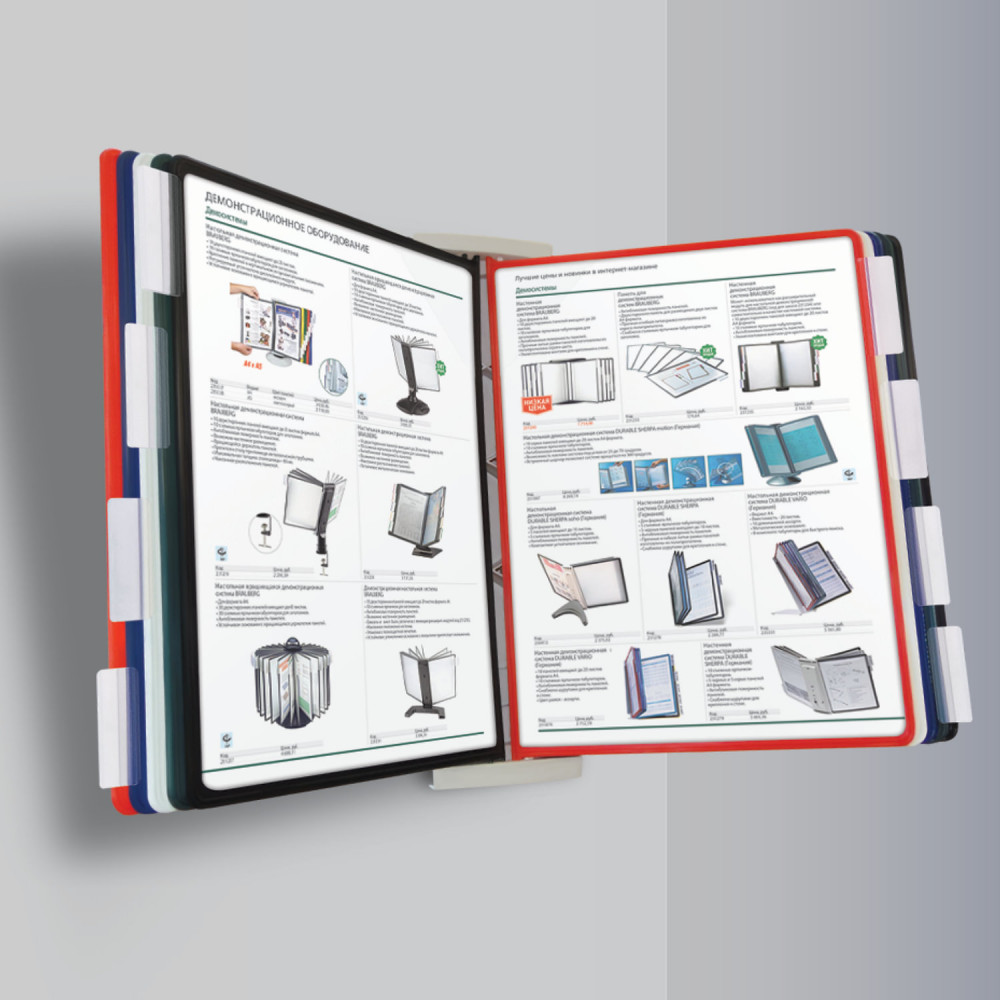 Настольная демонстрационная система Brauberg «Solid» позволяет удобно и быстро разместить информацию о компании, о предлагаемых товара, услугах и ценах, инструкции для персонала и др. 10 двухсторонних цветных панелей позволяют разместить одновременно до 20 листов формата А4. Прочные и гибкие литые рамки панелей изготовлены из полипропилена, пригодного для повторной переработки и дальнейшего использования.