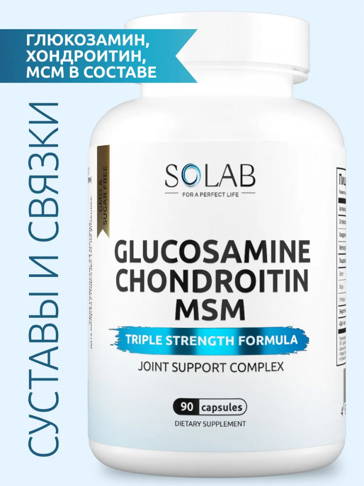 Solab Капсулы «Глюкозамин + Хондроитин + МСМ» («Glucosamine + Chondroitin + MSM»В данный момент этот товар отсутствует в продаже. Возможно, у нас найдется аналогичный или похожий товар здесь. Комплексная пищевая добавка «Глюкозамин+Хондроитин+МСМ» — это комплекс эффективных хондропротекторов, применяющихся для лечения и улучшения функций повреждённых суставов при остеоартрозе, артрите, и других заболеваниях опорно-двигательной системы. Являясь структурными элементами самого хряща, хондроитин и глюкозамин положительно влияют на естественное обновление соединительной ткани, а МСМ обеспечивает противовоспалительное и обезболивающее действие. |