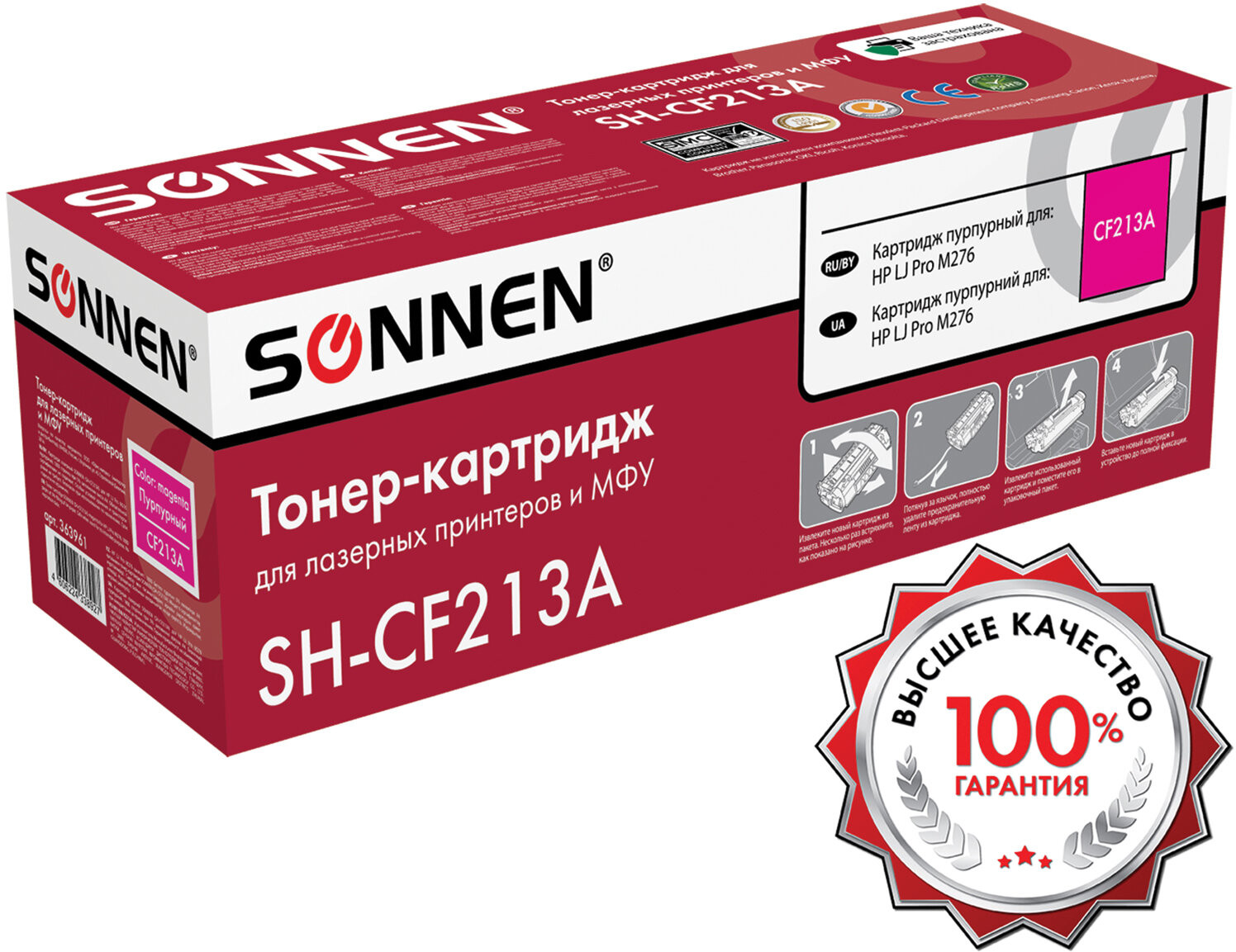 Совместимый картридж Sonnen (SH-CF213A) для HP Color Laser Jet M251n/251nw M276n. Совместимые лазерные картриджи Sonnen – это оригинальное качество по доступной цене. Данная модель содержит чип, подходит для лазерных принтеров и МФУ: HP LaserJet Pro 200 color Printer M251n/M251nw/MFP M276n/M276nw; Canon i-SENSYS LBP-7100CN/LBP-7110CW/LBP-7100C.