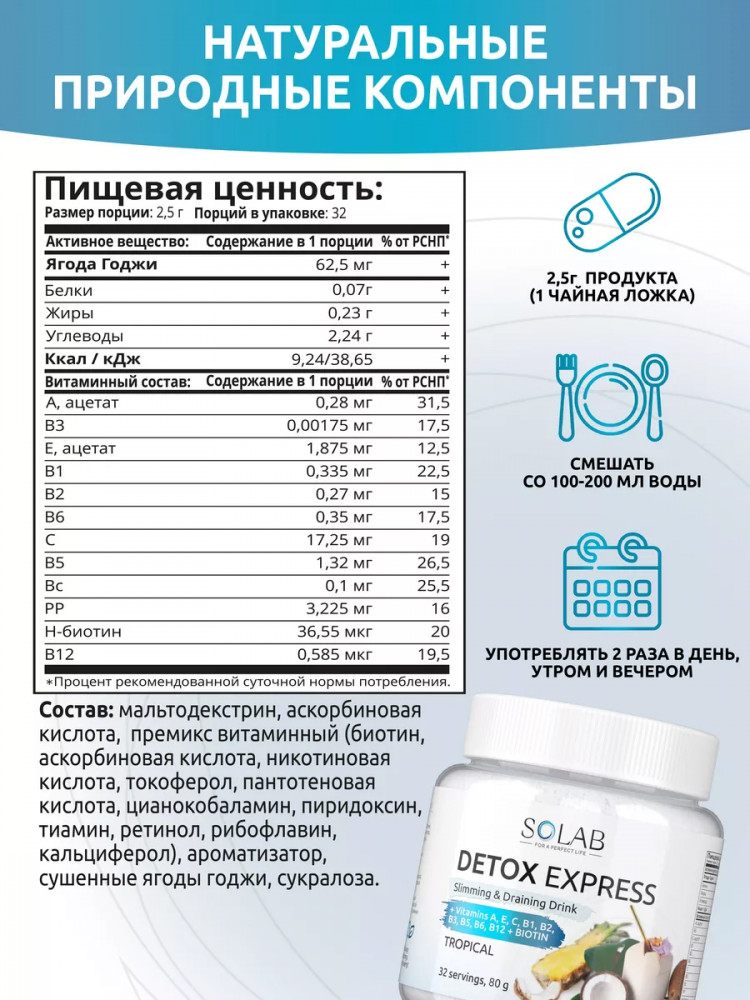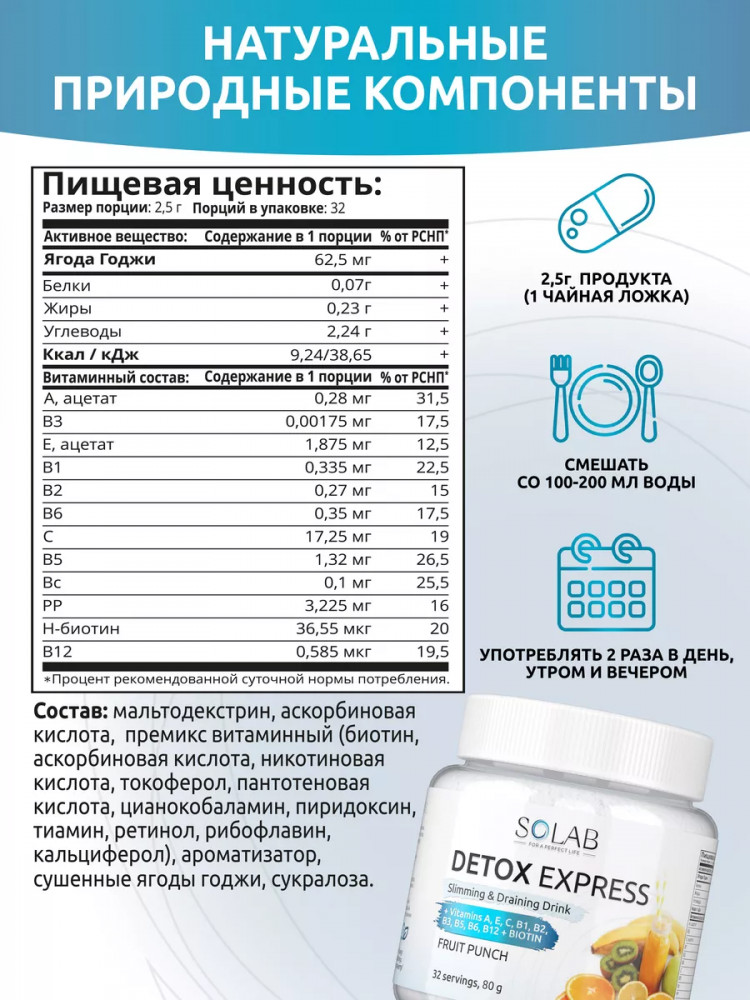 Solab Набор дренажных коктейлей с экстрактом ягод годжиВ данный момент этот товар отсутствует в продаже. Возможно, у нас найдется аналогичный или похожий товар здесь. Серия: Detox Express Набор дренажных коктейлей с экстрактом ягод гот Solab для бережного очищения организма и экспресс-помощи в похудении. |