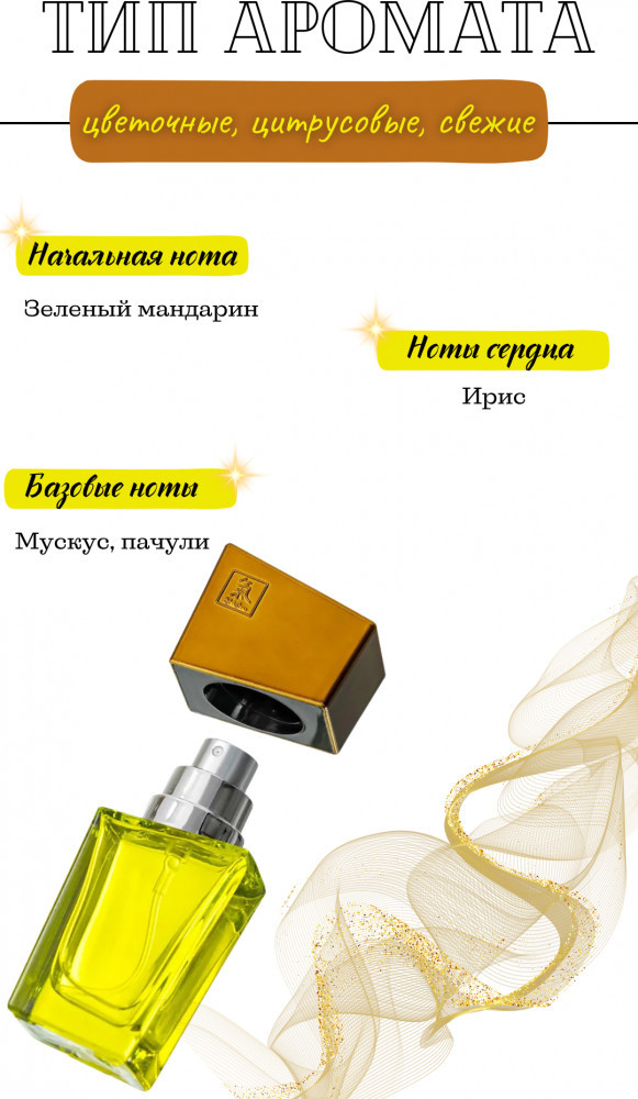 Цветочные ноты мандарина, лимона и бергамота в верхних нотах раскрываются мягко и свежо, создавая атмосферу веселья и радости. В сердце аромата расцветает ирис и роза, придающие ему женственность и чувственность. Эти ноты словно воплощают в себе нежность вашей души. А завершающие ноты мускуса и пачули создают основу, которая придает аромату глубину и долговечность. Он станет незаметным, но запоминающимся штрихом в вашем образе.