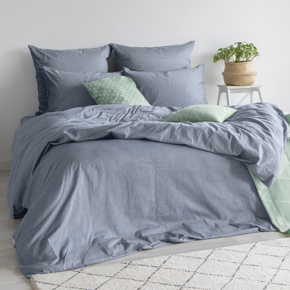 Пододеяльник Verossa — это стильное и комфортное решение для вашей спальни. Диагональное плетение материала обеспечивает мягкость и долговечность. Меланжевый эффект ткани придает изделию особую изысканность. Меланжевая ткань создается благодаря особому диагональному плетению волокон разного оттенка и цвета. Для производства этой ткани используются тонкие нити из 100% хлопка, что придает ткани особый «дышащий» эффект и превосходную терморегуляцию, а тактильные ощущения дарят удовольствие, как от прикосновений к шелку. Технология ACTIVE AIR способствует комфорту, легкости и отличной регенерации кожи, во время одного из самых важных процессов жизни — сна. Нанесенный на ткань натуральный состав, позволяет использовать изделия без тщательного отглаживания.