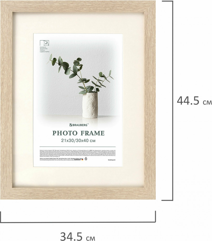 Рамка Brauberg «Ambassador», выполненная в универсальном багете цвета «дуб» с изюминкой в виде паспарту, идеально впишется как в классический, так и в современный интерьер. Рамка выполнена из МДФ и предназначена для фотографий стандартного размера А4 21×30 см (если использовать паспарту) или для фотографий, сертификатов, дипломов крупного размера A3 30×40 см (если убрать паспарту). Рамка подходит для вертикального и горизонтального подвеса.