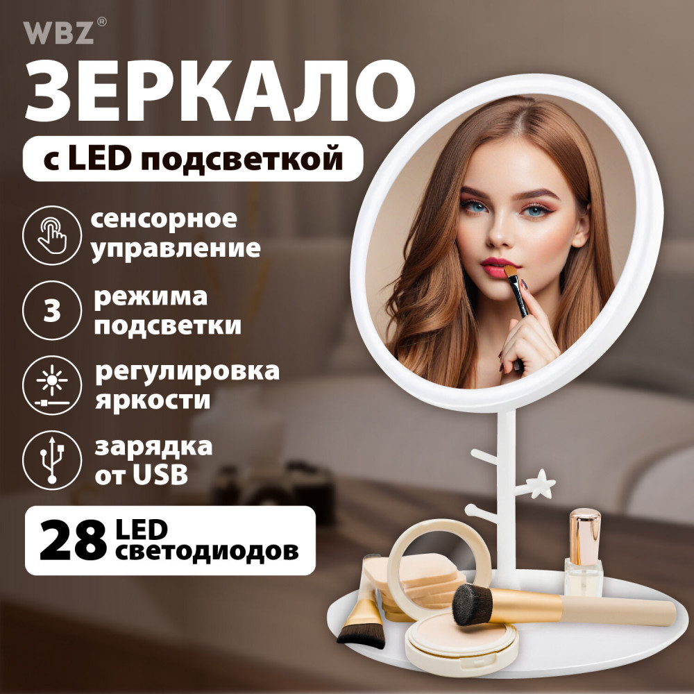 Зеркало с LED-подсветкой — это красивый и практичный аксессуар, которому будет рада любая женщина. Три режима подсветки и регулировка яркости позволят подобрать оптимальный свет для нанесения макияжа и проведения процедур по уходу за лицом. Зеркало с LED-подсветкой, которая работает при помощи сенсорного управления. LED-светодиоды расположены равномерно по контуру под поверхностью зеркального полотна. Кратковременное нажатие на кнопку сенсорного управления обеспечивает включение, выключение, а также выбор света, который может быть белым, тёплым и холодным. Длительное нажатие на кнопку позволяет выбрать яркость света в выбранном режиме.