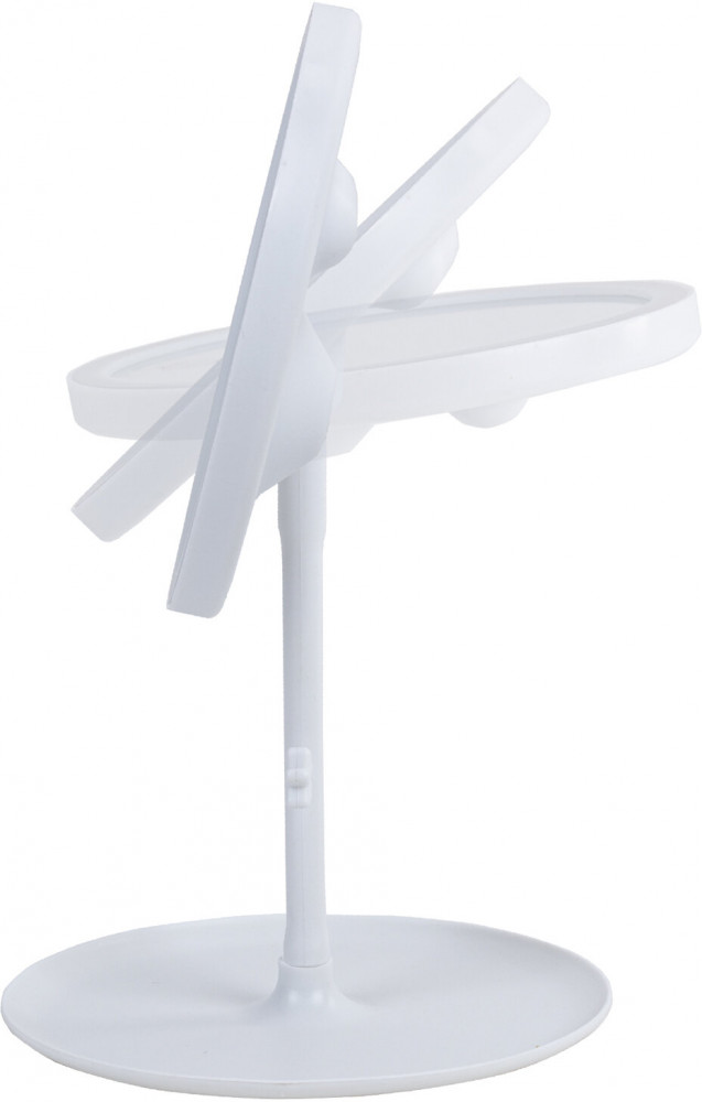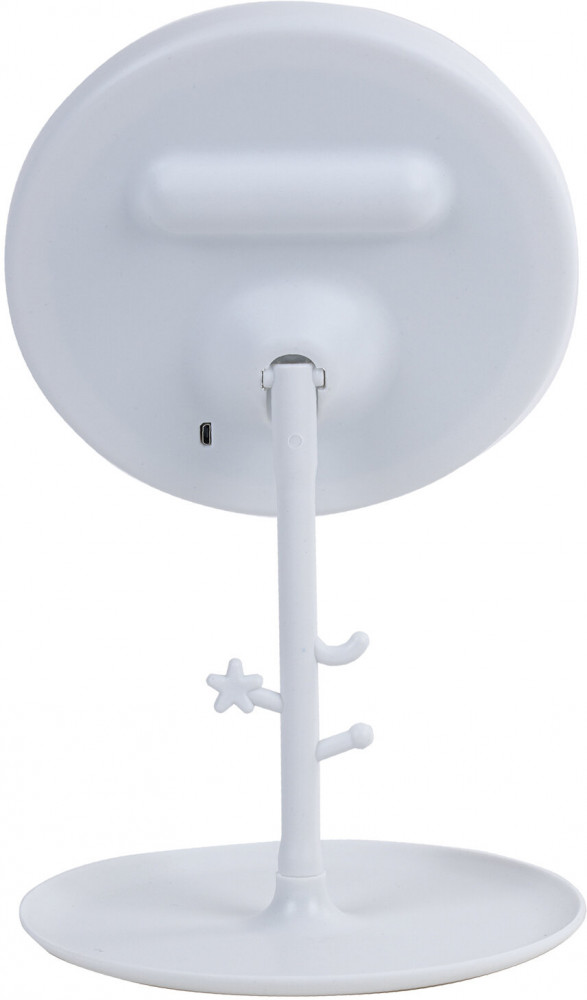 Встроенный аккумулятор ёмкостью 1200 mAh обеспечивает непрерывную работу подсветки в течение нескольких часов. Для зарядки аккумулятора используется USB-кабель, который входит в комплектацию. Зеркало имеет подвижное соединение с опорой, позволяющей вращать его для выбора оптимального угла наклона. Подставка зеркала может использоваться для хранения аксессуаров и косметики. Размеры: высота — 28.5 см, диаметр зеркала и основы — 17 см. Ёмкость аккумулятора — 1200 mAh. Количество светодиодов — 28. Длина USB-кабеля — 50 см.