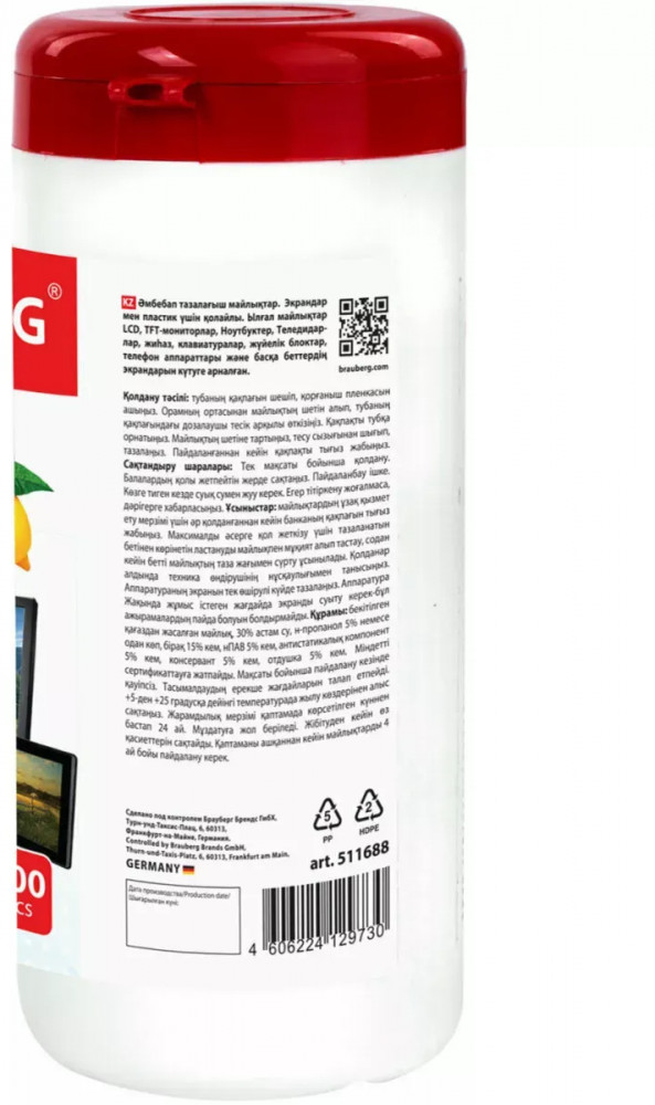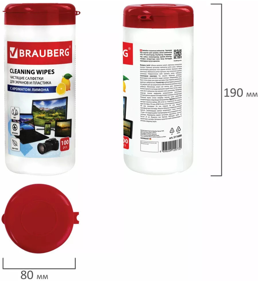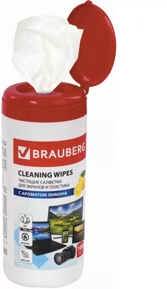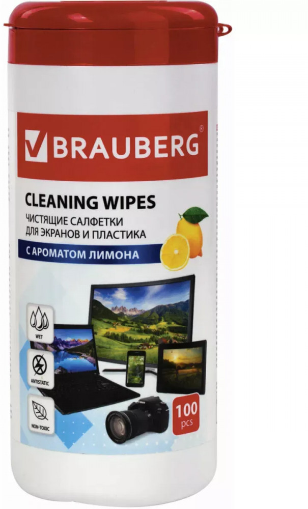 Brauberg Салфетки влажные для экранов всех типов и пластика с ароматом «Лимон»-35% +34