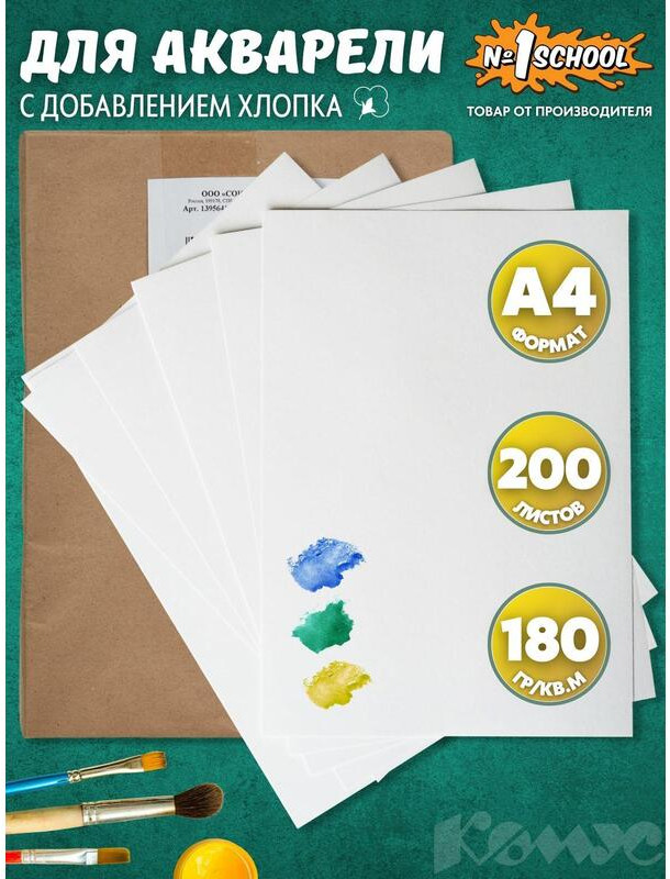💳 Оплатить за товар можно при получении 🇰🇿 Есть бесплатная доставка по Казахстану от 1 дня 🎁 Копите бонусы с каждой покупки Бумага для акварели торговой марки №1 School содержит 200 листов А4 формата, плотность бумаги 180 г/кв.м, бумага с содержанием хлопка около 20%.Формат листов: 210×297 мм Количество листов: 100 шт. Предназначена для рисования всеми видами водорастворимых красок. |