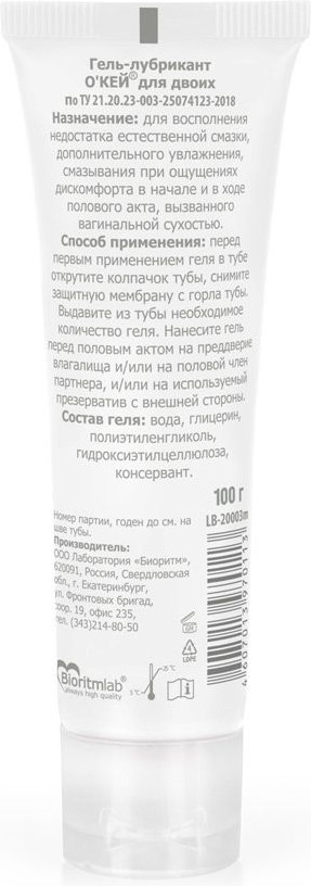 Биоритм Гель-лубрикант на водной основе для двоих «Окей»