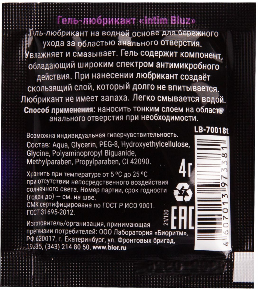 Биоритм Гель-лубрикант «Intim bluz»