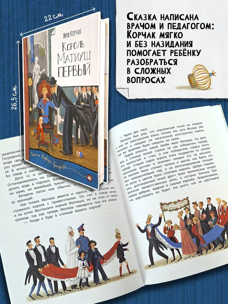 💳 Оплатить за товар можно при получении 🇰🇿 Есть бесплатная доставка по Казахстану 🎁 Копите бонусы с каждой покупки Серия: Детская художественная литература Матиуш стал королем, когда ему было всего десять лет, а король, даже такой юный, должен управлять своей страной, и Матиуш отважно берется за дело. Он многое поймет и многому научится чтобы детям хорошо жилось, недостаточно раздать им игрушки и шоколад на войне нужны не только ружья и пушки, но и сухари и сапоги, а проводить реформы очень непросто. Матиуш совершит путешествие через пустыню, учредит детский парламент, подружится с африканскими королями, узнает радость победы и горечь предательства. |