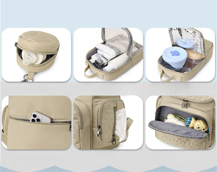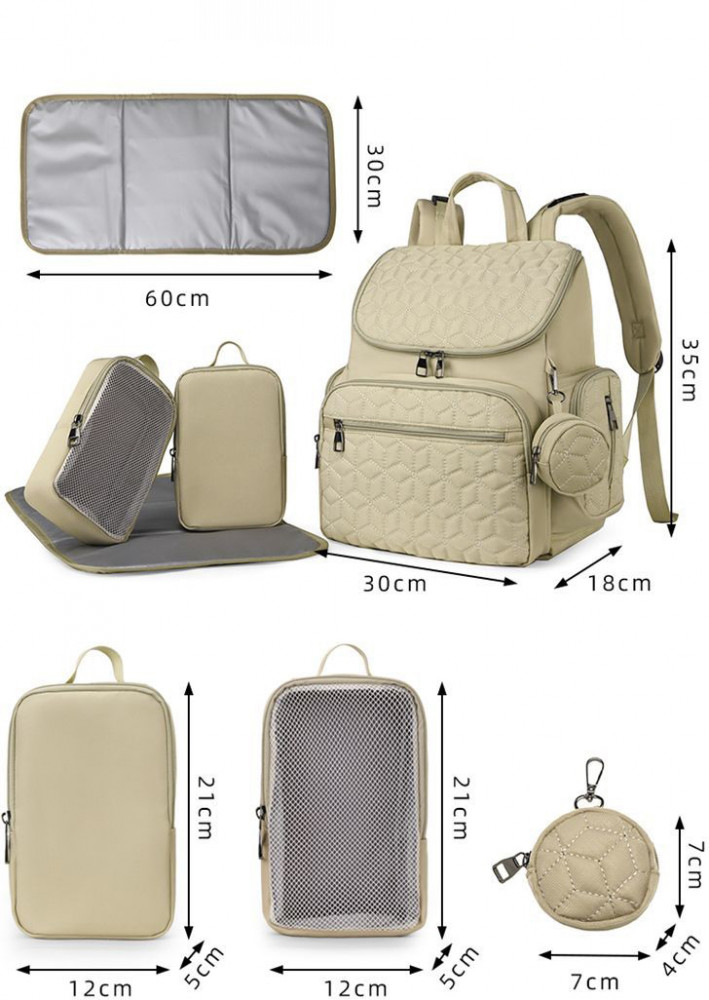 Комплект рюкзака 5 в 1 «Mommy Bag» — крайне выгодное предложение, обеспечивающее удобство передвижения мамам с детьми, будь то прогулка, путешествие или поход. Удобный, вместительный и стильный с популярным принтом — идеальный аксессуар для мамы и малыша. Рюкзак вмещает все вещи, необходимые для маленького ребенка, будь то игрушки, одежда или аксессуары. Водонепроницаемая ткань обеспечивает защиту содержимого сумки мамы и ребенка от влаги, а многочисленные карманы позволяют разместить все нужные детские вещи и мелочи. Присутствуют специальные карманы для бутылочек, исключающие их опрокидывание а также карманы для влажных салфеток, полотенец и подгузников.