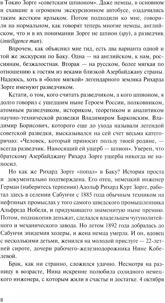 Эта книга — своеобразный творческий отчет писателя Николая Долгополова. 25 лет назад он опубликовал свой первый материал об Абеле — Фишере и с тех пор написал около двух тысяч статей и 12 книг, которые стали бестселлерами. Дважды лауреат литературной премии Службы внешней разведки (СВР), сценарист трех полнометражных фильмов, показанных на Первом канале, комментатор сотни документальных фильмов и телепередач о разведке. Даже снялся в заглавной роли знаменитого Кима Филби! |